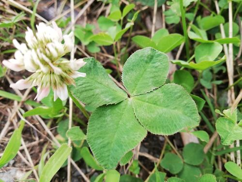 四つ葉発見!ラッキー!! 梅雨の晴れ間に誘われて、近辺の山道を散策中に四つ葉のクローバーを見つけました。 花屋の冷蔵庫に並ぶカトレアや胡蝶蘭も素敵だけど、野っぱらに自力で咲く野の花も小っちゃくてかわいい。 不安定な足元ばかり見て歩いている時で…