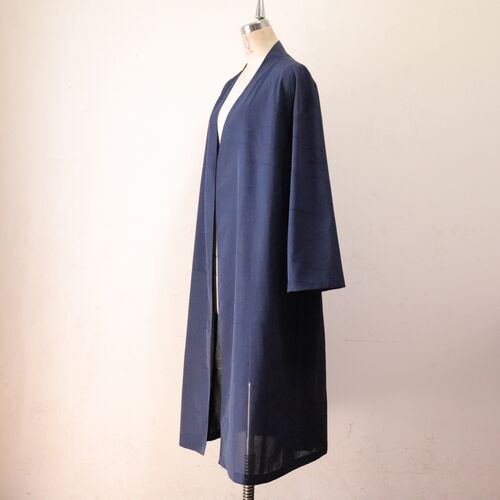 お客様からのご依頼で、透け感に風情のある紗の着物から、ガウン風のコートをつくりました。 大人っぽくかっこいい雰囲気に仕上がりとても満足しています。 前を開けて着るのも、腰でリボン結びにするのも素敵です。 シンプルで幅広い年齢、体型の方に似合い…